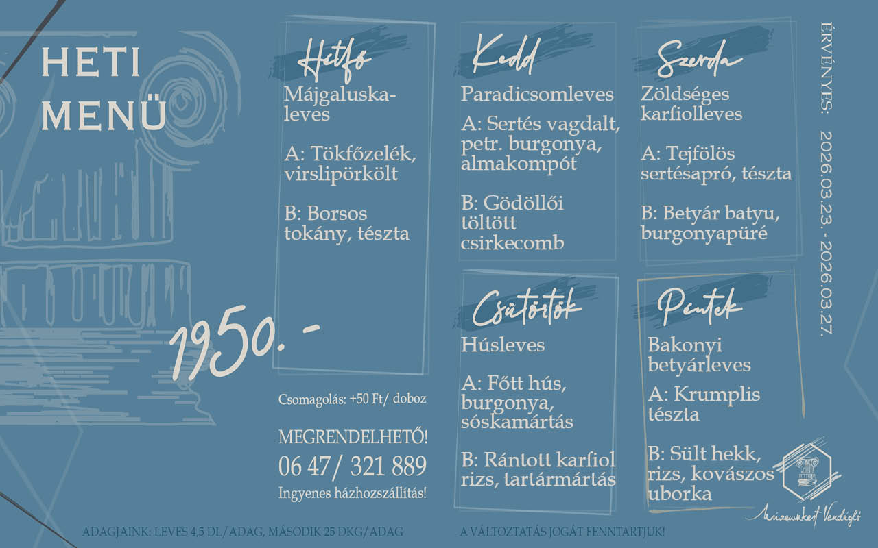 A RENDELÉSEKET SZEMÉLYESEN ÁT LEHET VENNI ÉTTERMÜNKBEN! RENDELÉSFELVÉTEL KIZÁRÓLAG a 47/321-889-es telefonszámon!